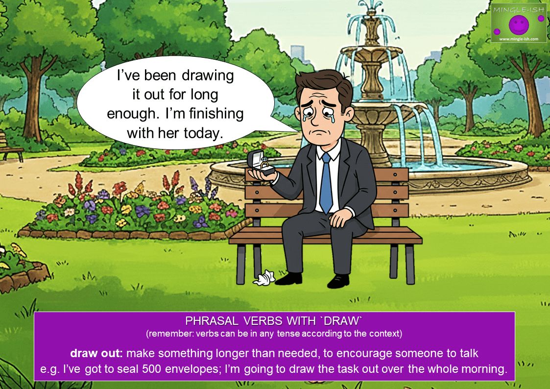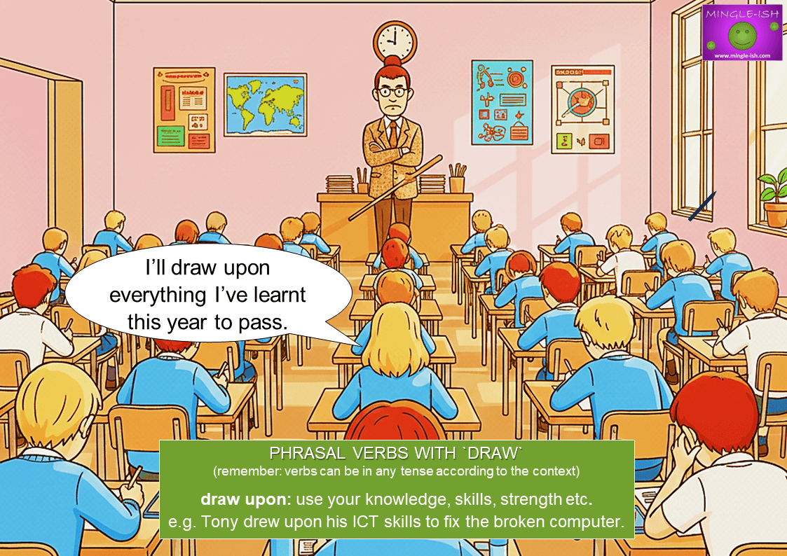 So there you have it—“draw” isn’t just a boring word about pencils and paper. It can plan, pull, use, or stretch things out, and yes, it can be a little sneaky for ESL learners. The trick? See it in action, practise it, and don’t be scared to play around with it. Once you get the hang of these phrasal verbs, you’ll be drawing confidence in English faster than you can draw up a contract!
