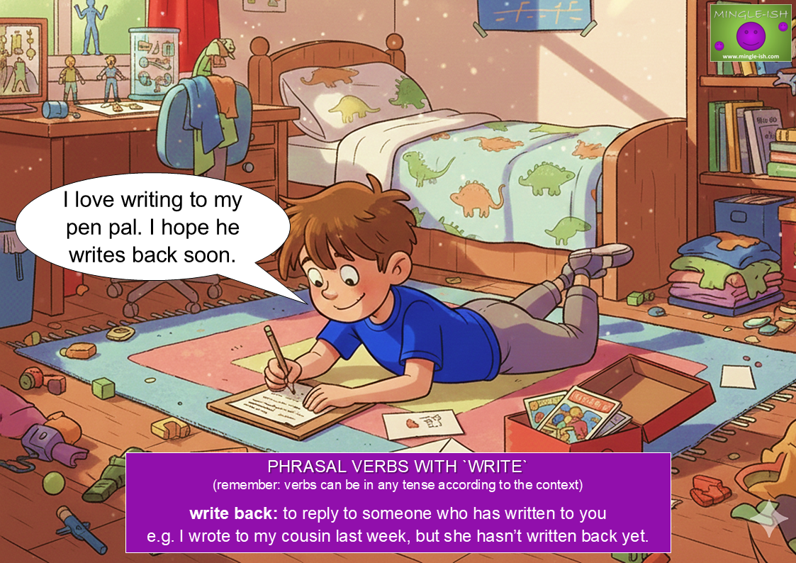 Below is a clear, easy-to-follow list of the most common phrasal verbs with write, with simple meanings and picture examples to make each one easier to remember and use.
